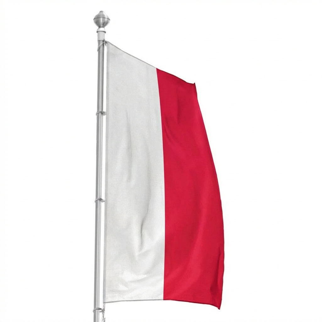 Flaga Polski na maszt w układzie poziomym lub pionowym, do użytku zewnętrznego i wewnętrznego. Idealna dla urzędów, instytucji i miejsc o charakterze reprezentacyjnym
