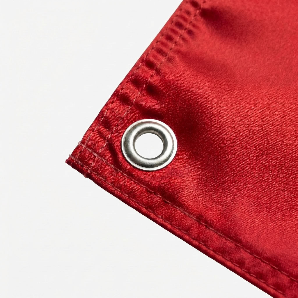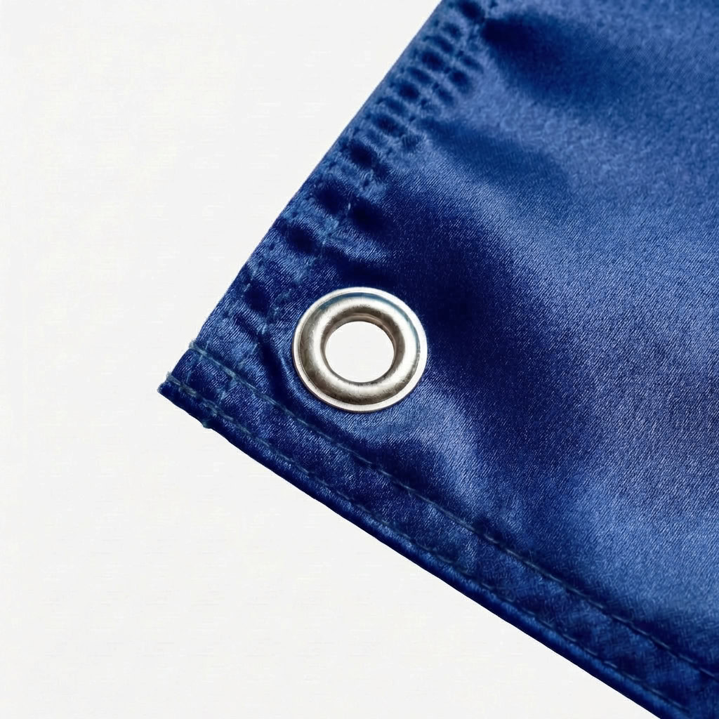 Satyna dwustronna (premium) – flaga składa się z trzech warstw materiału: dwóch warstw satyny z nadrukiem oraz specjalnej warstwy separującej, która zapobiega prześwitywaniu.