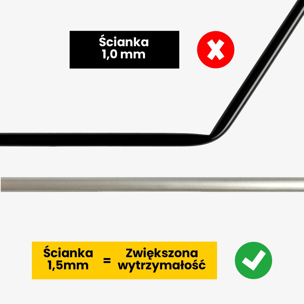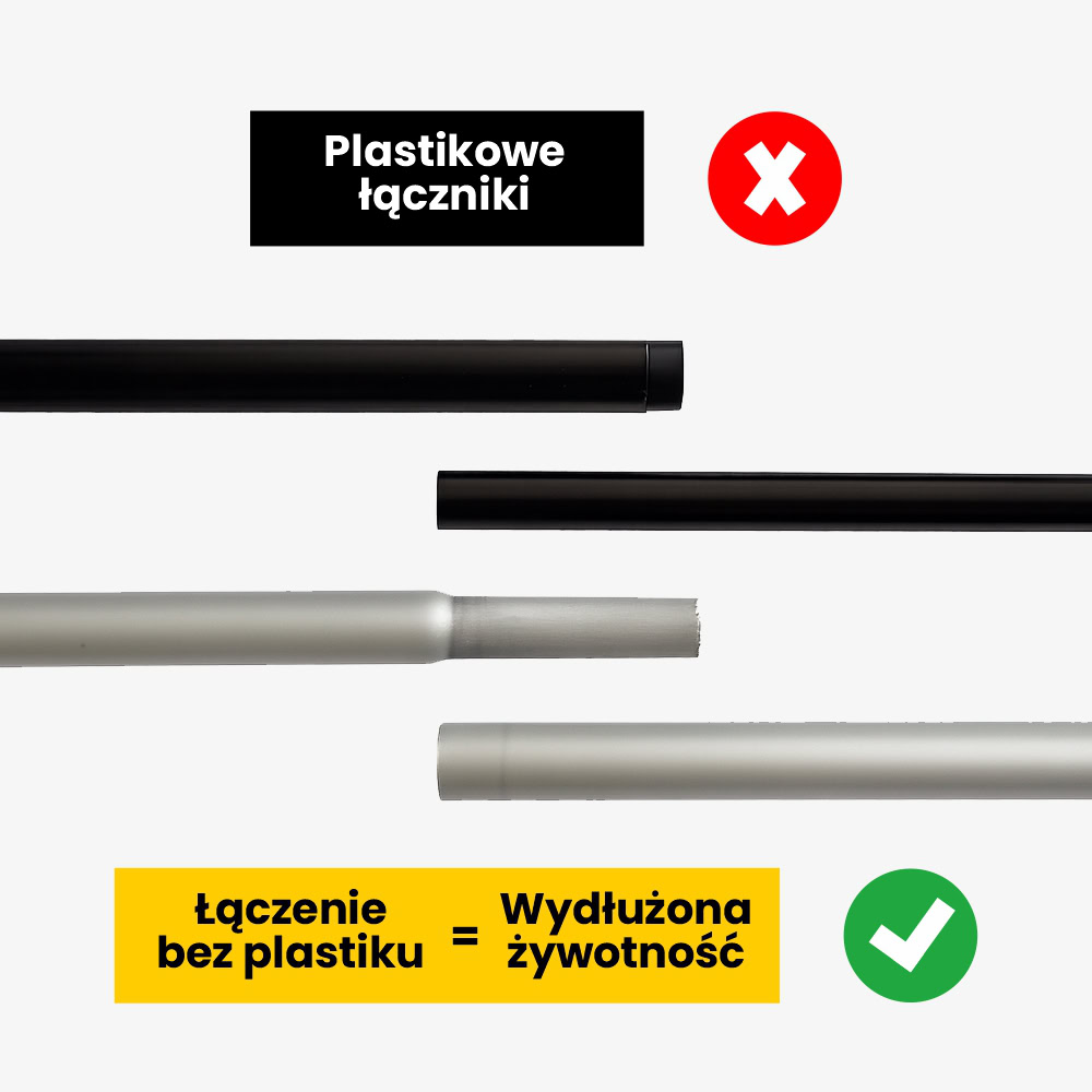 Maszt: aluminium anodowane + pręt z włókna szklanego, średnica zewnętrzna masztu 20mm, grubość ścianki 1,5mm.